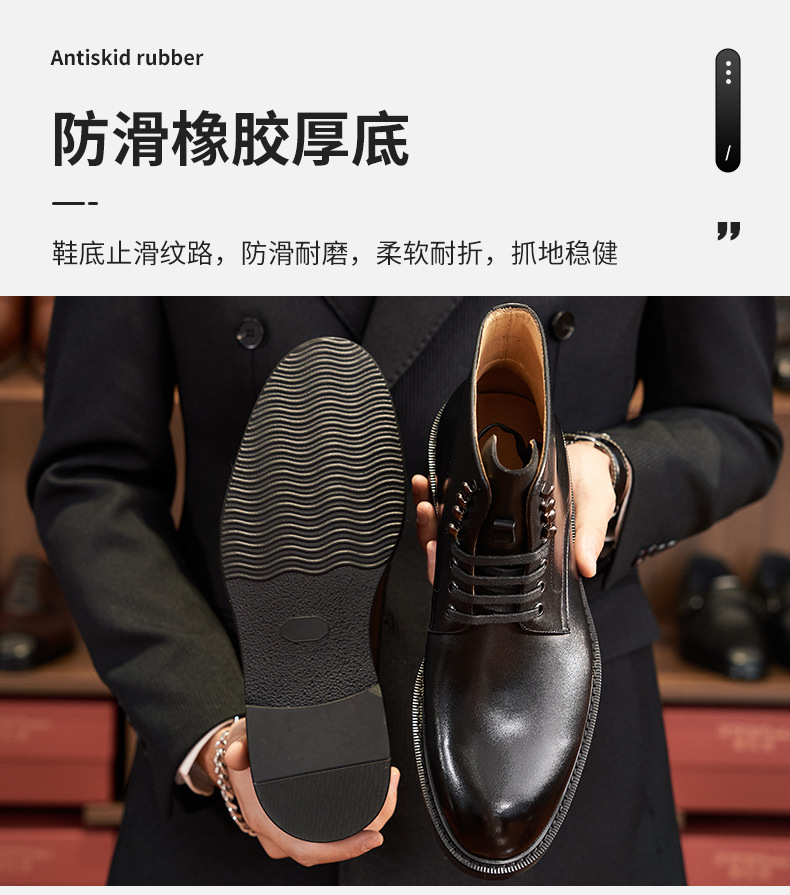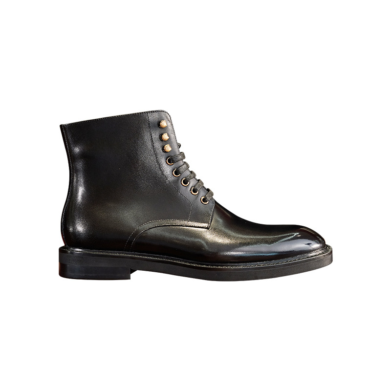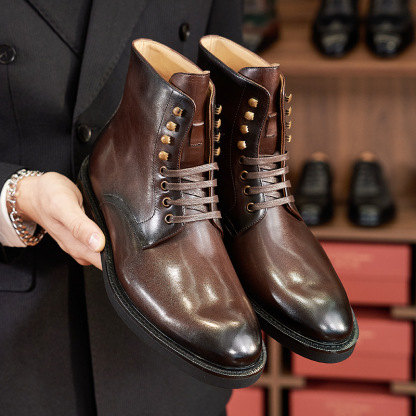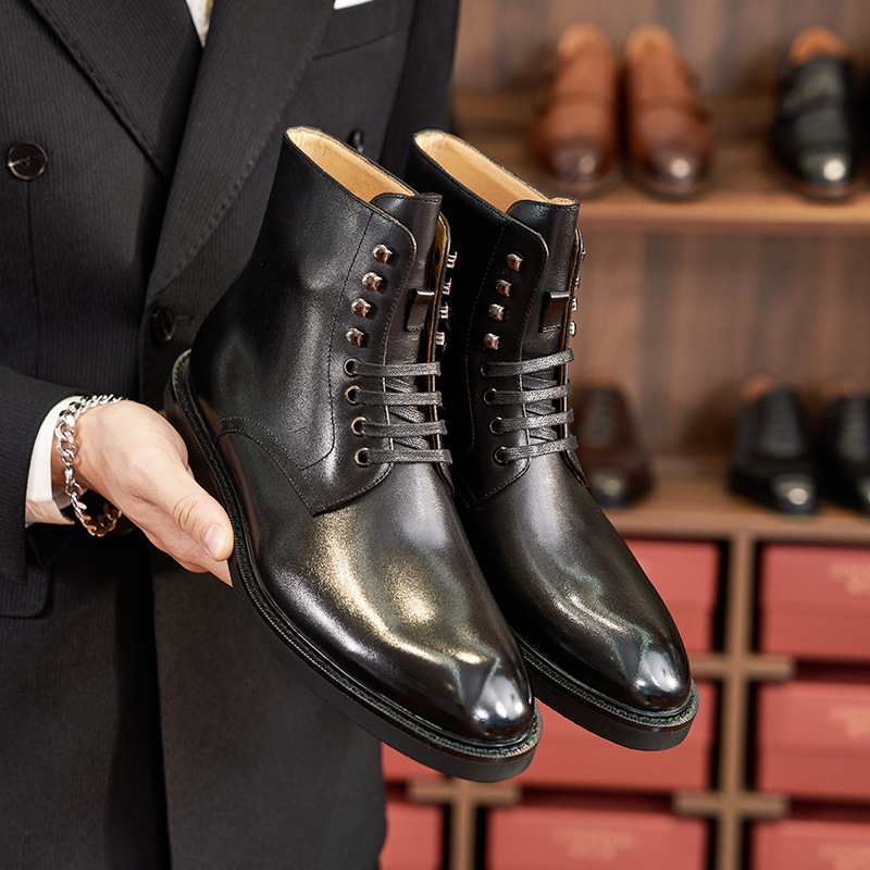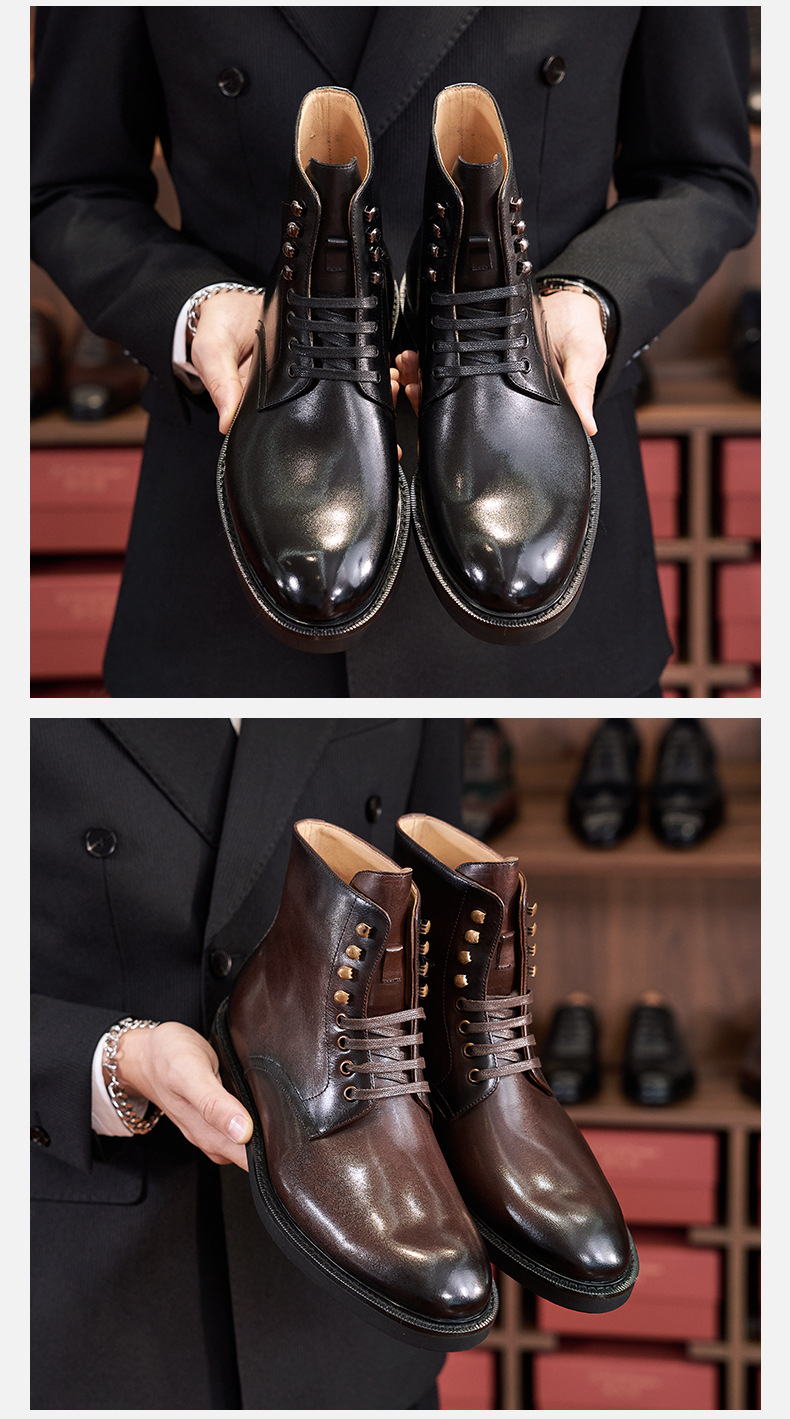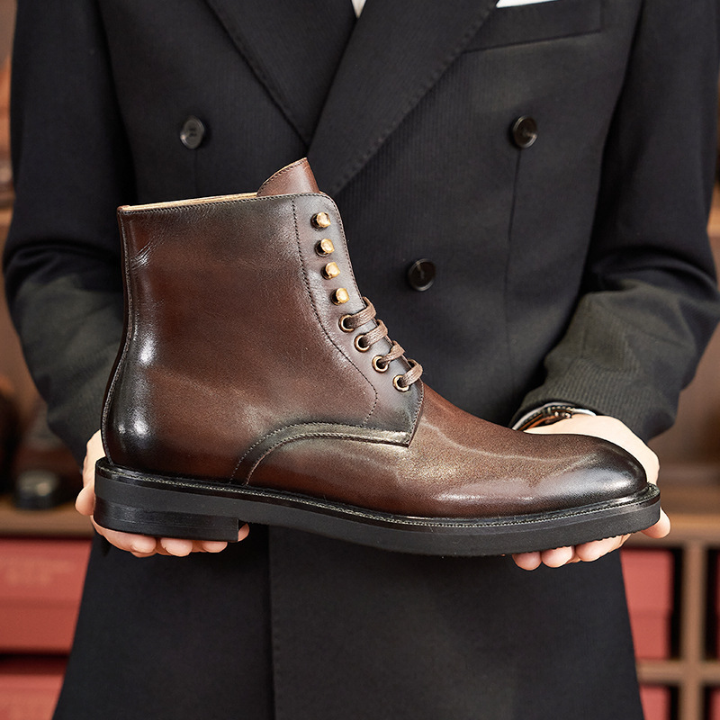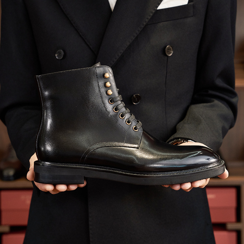Fashionable and versatile men's leather boots casual round toe lace-up Chelsea boots first layer calfskin British workwear motorcycle boots