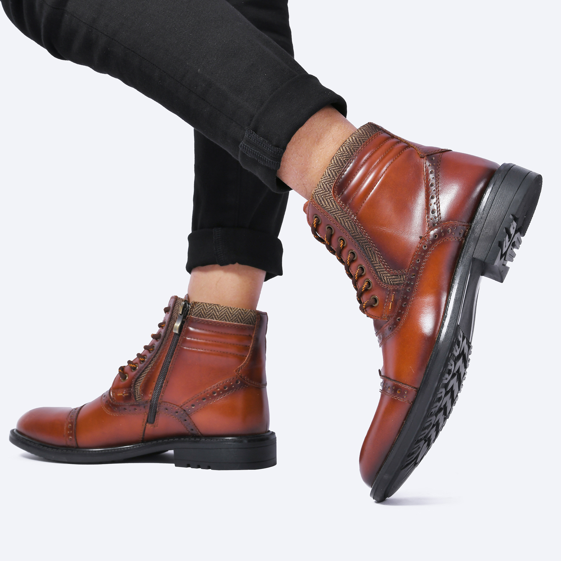 GENTLEMAN™Genuine leather brogue high top men's boots